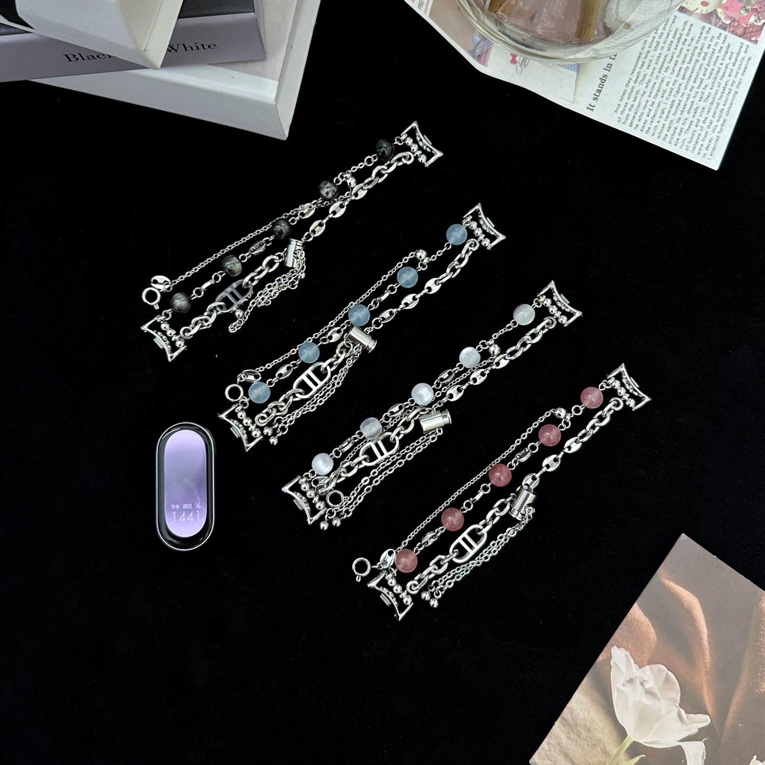 裴蔻 适用小米手环10/9/8小猪鼻不锈钢表带9Pro原石串珠手链腕带