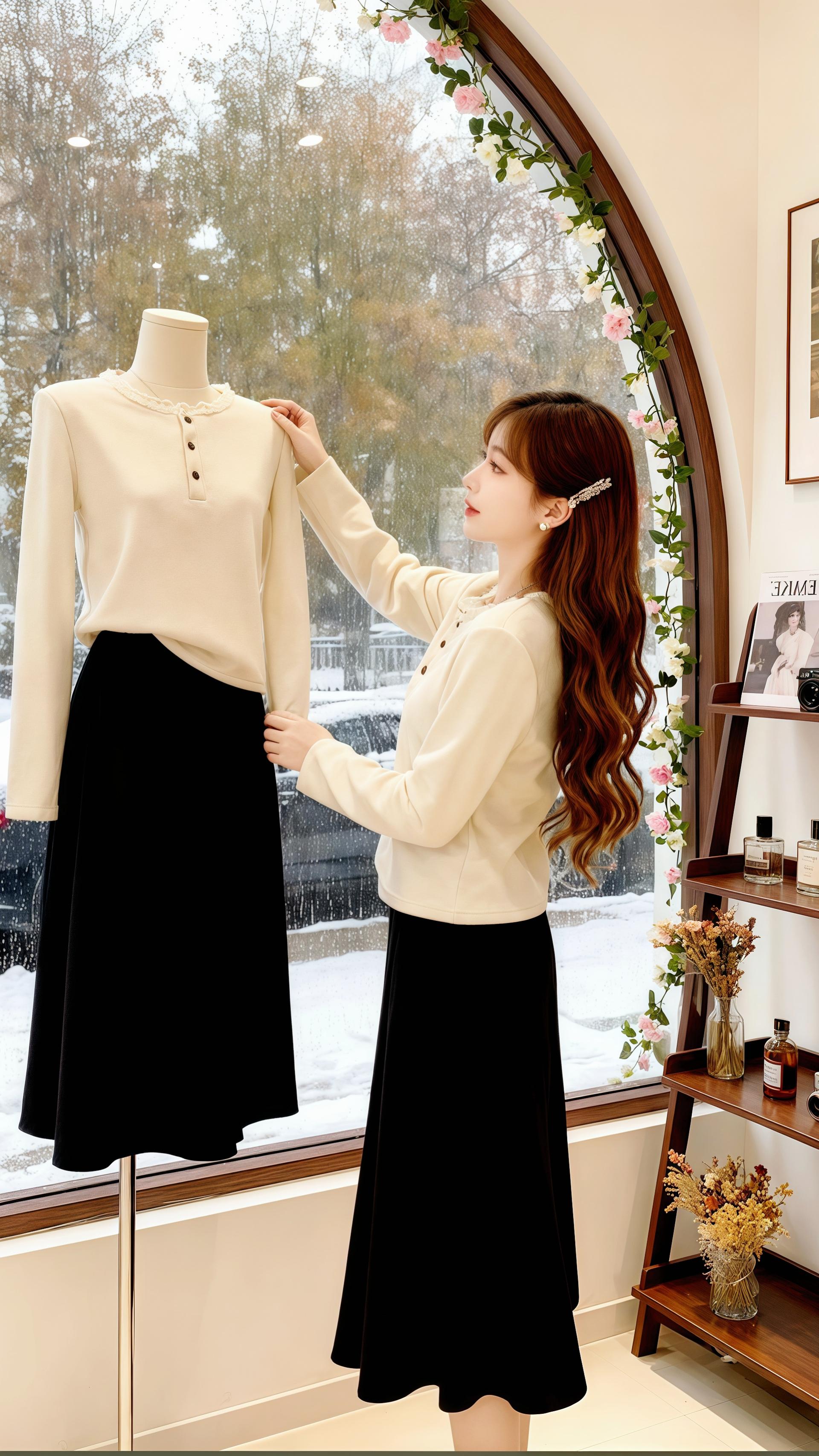 《裙裾间的秋日诗》 秋意像支温柔的笔,把窗外的树涂成琥珀色,而她是这季节里另一帧流动的画。 那身波点裙装,是时光揉碎的星子——白衬衫的领结系着少女心事,黑裙上的圆点像未说出口的呢喃,在试衣镜前,在咖啡吧台旁,在画架的光影里,把日常晕染成诗。当指尖抚过衣料的纹理,当裙摆随着脚步轻晃,仿佛能听见秋风吹过街巷的簌簌声,和心底那个关于“美”的秘密,正随着画笔的起落,在画布上、在岁月里,慢慢洇开成一朵永不凋谢的花。 连那只白绒绒的小狗,也成了这诗意的注脚,吐着舌头,把她的身影,连同满室的秋光,都温柔地纳入目光里。原来美好从不是孤注,而是裙裾摆动时,与季节、与热爱、与生活本身,悄然完成的一场共振。#连衣裙#高级感穿搭 @DOU+小助手 @抖加🔥上热门🔥dou+🔥热点宝