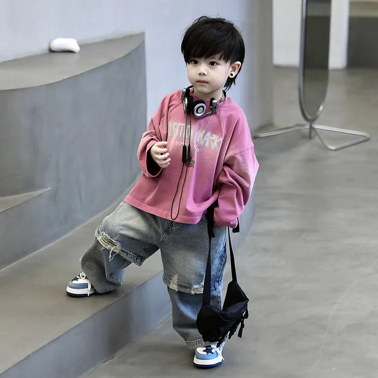 童装2025春秋季新款韩版粉色渐变打底衫时尚个性假两件长裤两件套
